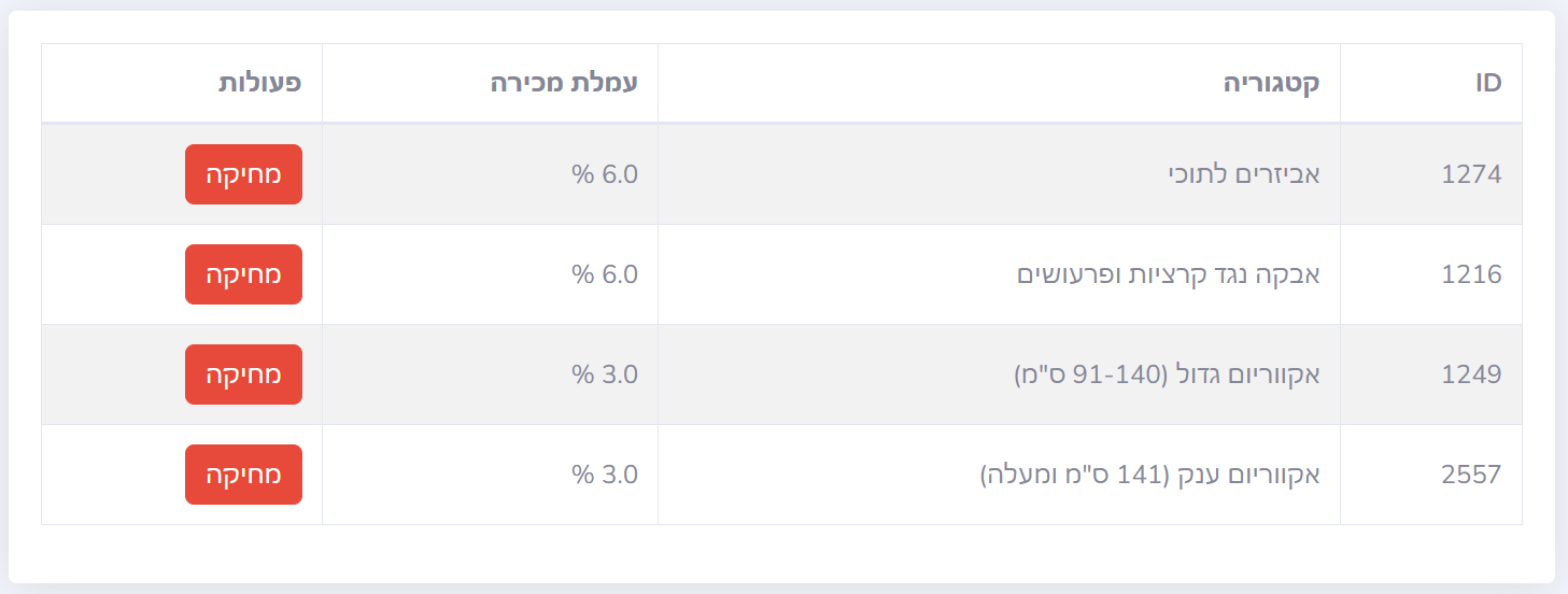 כדי לשנות את העמלה לפי קטגורות או מוצרים עקבו אחרי ההוראות הבאות: