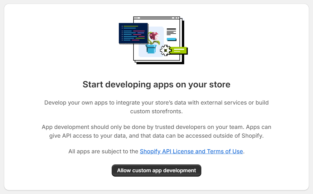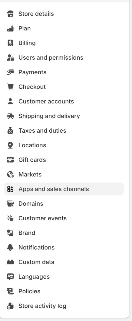 2. בחרו בתפריט השמאלי בתפריט Apps and sales channels ולחצו על הכפתור Develop apps