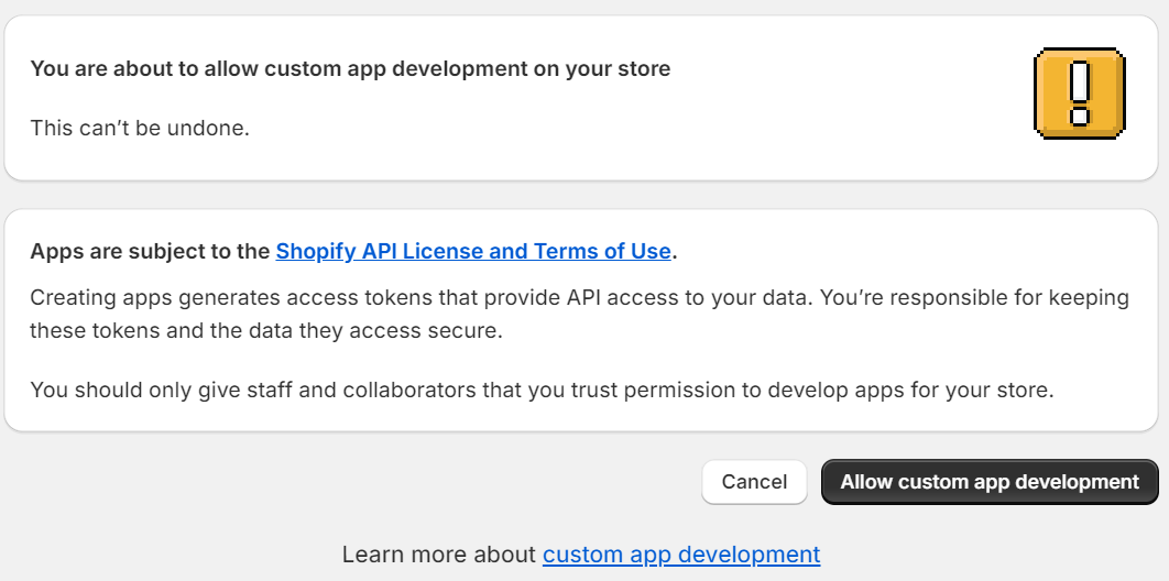 3. במידה וזו הפעם הראשונה שאתם מבצעים פעולה זו לחצו על הכפתור Allow custom app development