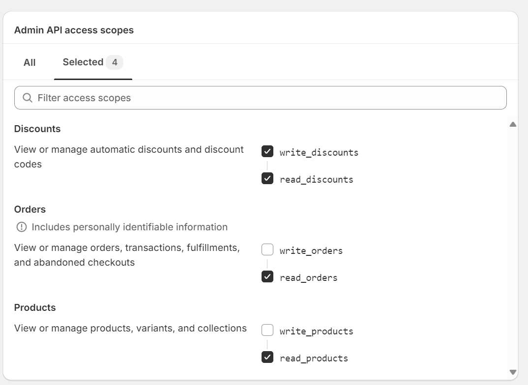 לצורך קביעת עמלה לפי קטגוריות ולפי מוצרים יש צורך במתן הרשאות לקריאת נתונים על המוצרים והזמנות בחנותך.