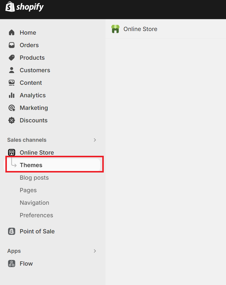 1. לחצו על Online Store בתפריט השמאלי ולאחר מכן בחרו ב-Themes