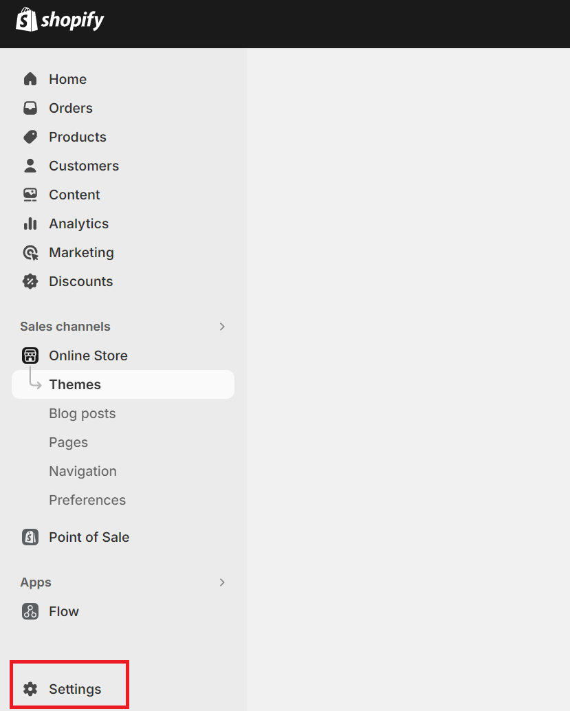 1. הכנסו למסך ההגדרות על ידי לחיצה על Settings בתפריט השמאלי בעמוד ניהול החנות שלכם